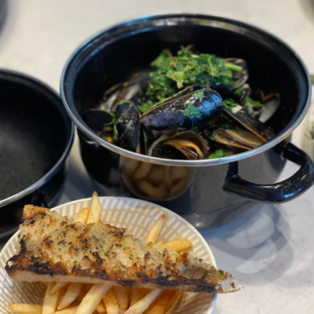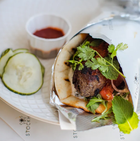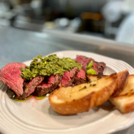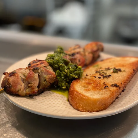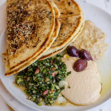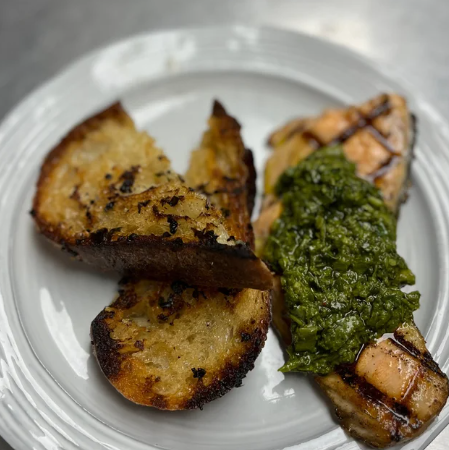 comes with chermoula, grilled garlic sourdough