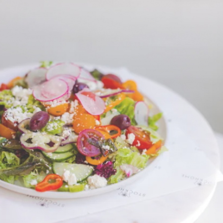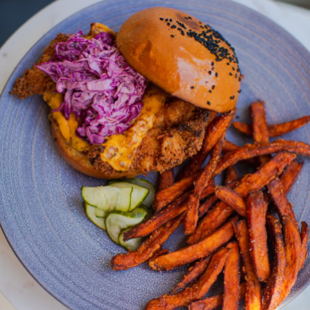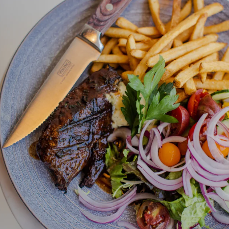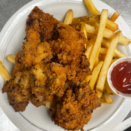 choice of pommes frites, basmati rice, or salad